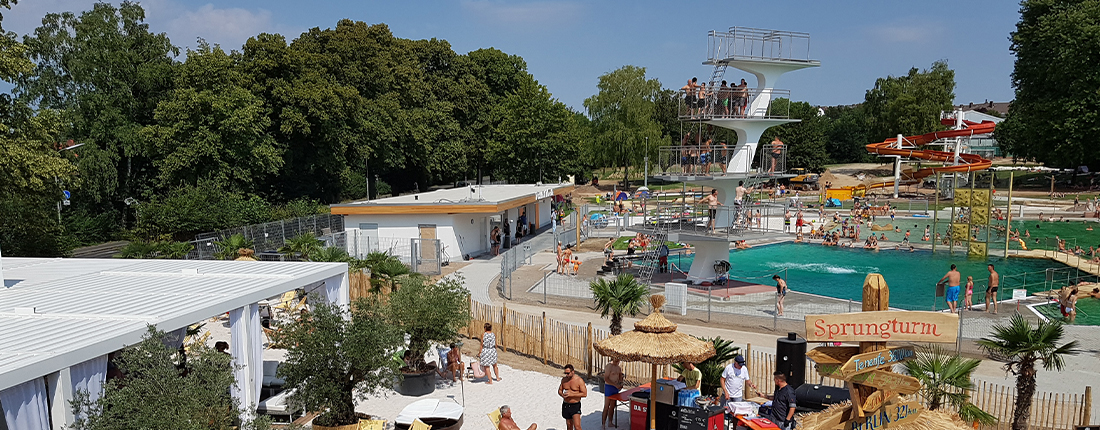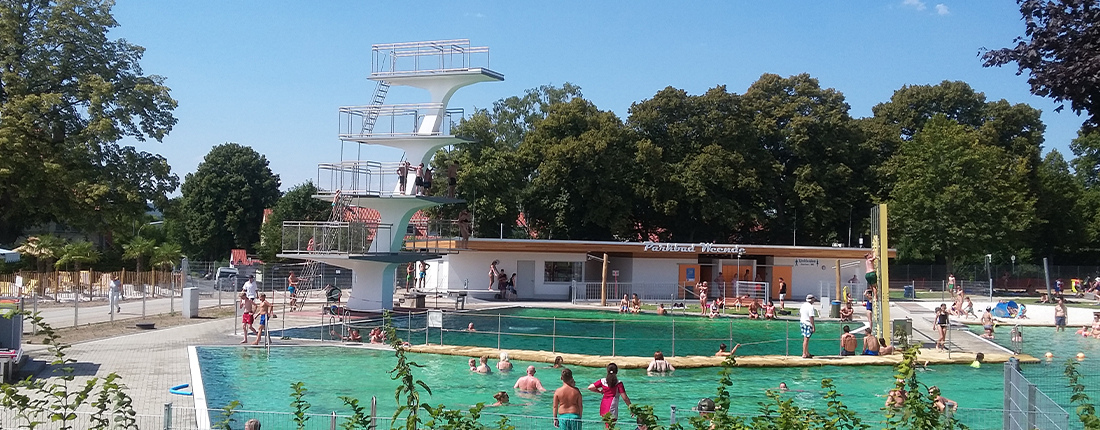 Im größten der Göttinger Freibäder kann man auf einer Gesamtfläche von ca. 20.000 m² den längsten Anlauf nehmen, um sich mutig in die Fluten zu stürzen.